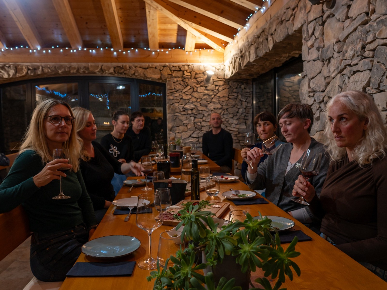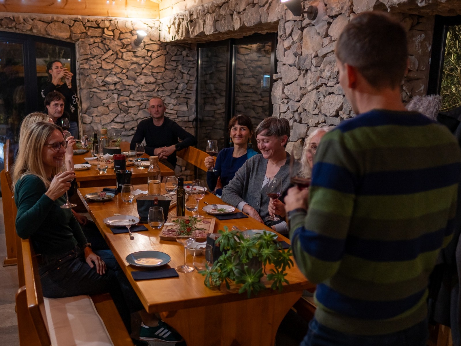 Ove subote, 20.12., odazvali smo se pozivu vinara Nikole Birina u Vodice na degustaciju vina. U ovo predbožićno vrijeme bila je ovo lijepa prilika da se nakon našeg tradicionalnog domjenka još jednom podružimo u ovoj godini, ali i da naučimo nešto više o vinima našeg podneblja, kao i kombiniranju istih s nekim stranim sortama. Uz vatru s komina u kušaonici vinarije koja je sagrađena usred starog obiteljskog maslinika Nikola nam je kroz kušanje čak osam različitih vina ispričao svoju vinogradarsko-vinsku obiteljsku priču.
